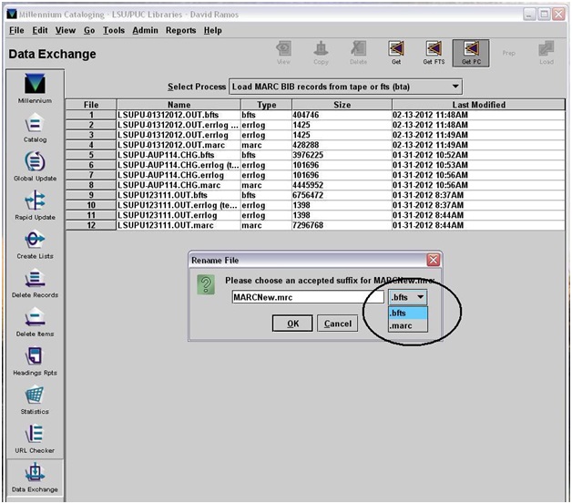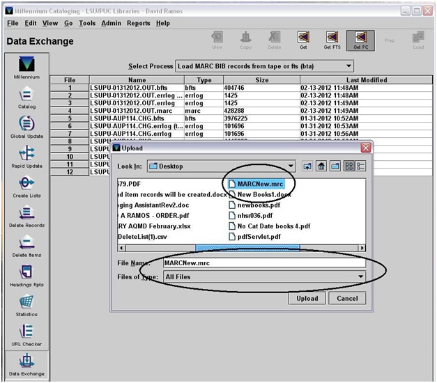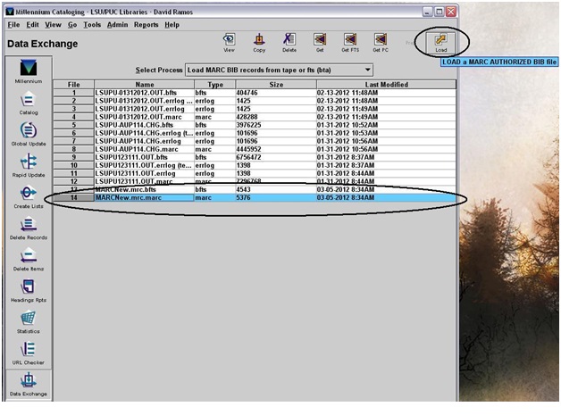 - Note that a new file has now appeared on the “Data Exchange, MARC BIB” Loading page.