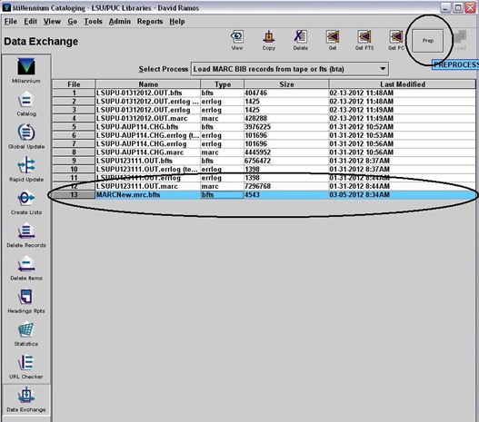 - Select your new file, so that it is now highlighted and select “Prep.”