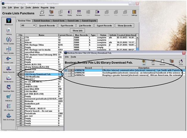 - Note the fields of “Location”, “Created” and “date”. The Range is set for all known bibliographic files in system.