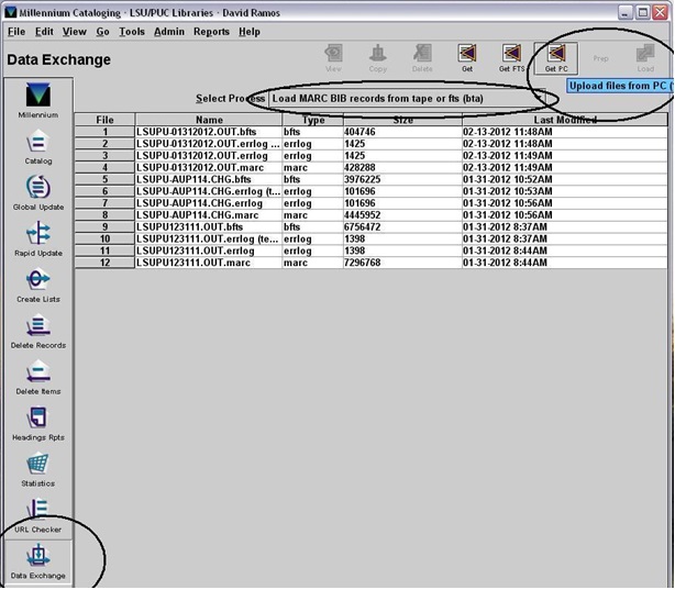 - Note that a new file has now appeared on the “Data Exchange, MARC BIB” Loading page.
