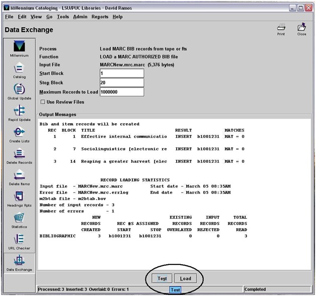 - I recommend “Test” prior to “Load” to ensure the correct file has been selected and that nothing untoward will happen with your final upload.