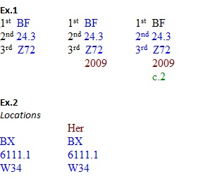 - The first thing that needs to be done is alphanumeratize the order cards according to the call numbers. In rare occasions, there will be an accession number. Keep those separated from the ones with current system. Alpha dividers can be found inside this same drawer. Make sure every order card is in the correct order. Look at the whole call number, not just the first letter (ex.1). Also, keep an eye out for location codes (ex.2).