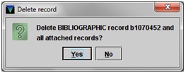 - A popup will appear after clicking on Delete Bibliographic Record.